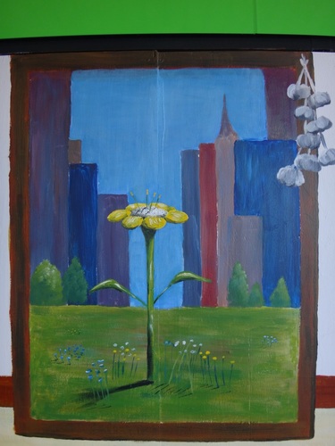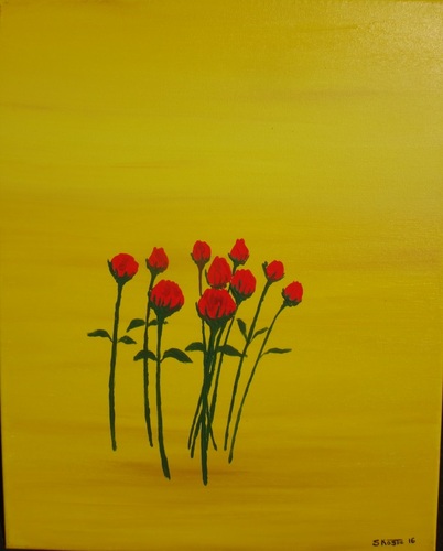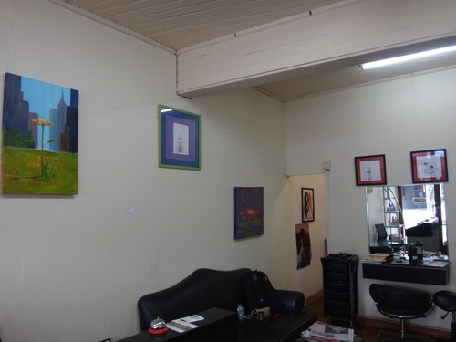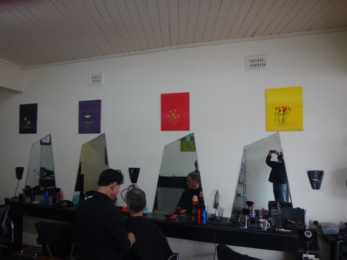 The flower power exhibition - at Alexanders Hairdressers Woonona NSW Australia Many flowers I paint are from my mind...like visions of the past. Many flowers are representations of people in the cafe. Flowers are beautiful.